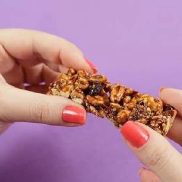 Amendoim, melado de cana, castanha-de-caju, amêndoa, frutas vermelhas desidratadas (cranberry e amora), isomalto oligossacarídeo de tapioca (fibra de tapioca), castanha-do-Brasil, uva-passa, semente de chia, fibra goma acácia, gordura de palma, acidulante ácido cítrico, antioxidante lecitina de girassol, aromatizante natural e corante natural carmim.